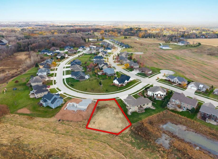Nestled in Glacier Ridge—one of North Appleton’s most sought-after neighborhoods—this homesite is surrounded by rolling terrain, wooded ravines, and picturesque scenery, with Plamann Park directly across the street. The backdrop of undeveloped land and a tranquil pond provides rare privacy, delivering the feel of expansive acreage without the added maintenance.