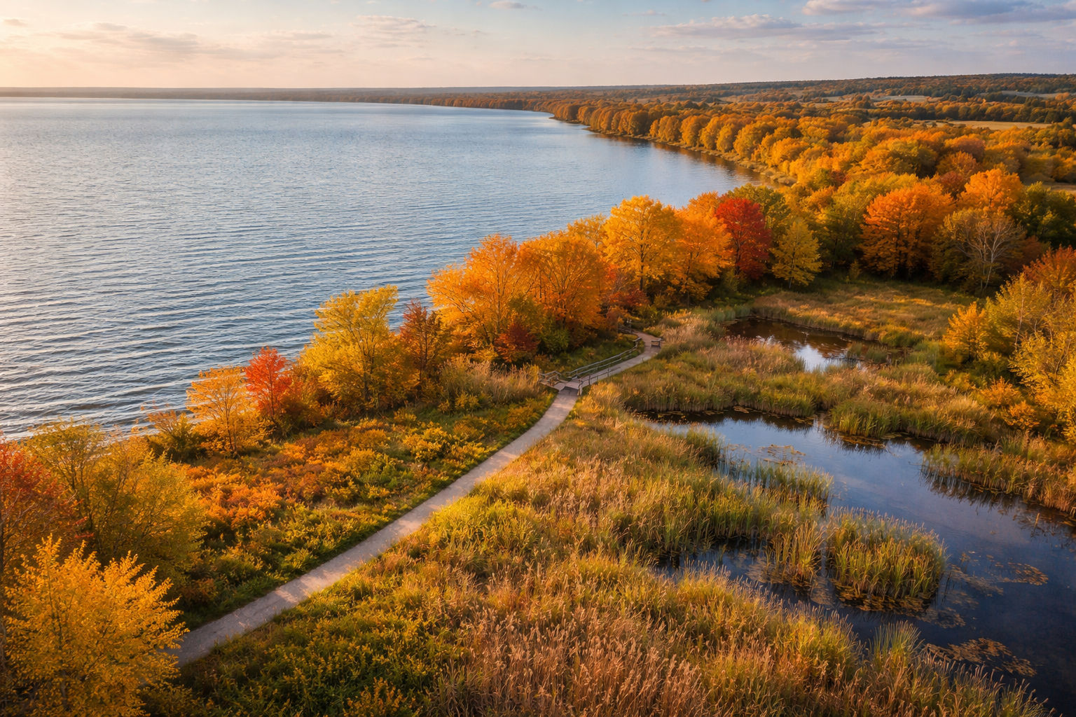 Residents enjoy year-round lake access — from summer days on the water to fall sunsets and winter ice activities. Parks and trails throughout the village provide opportunities for walking, biking, and neighborhood gatherings.