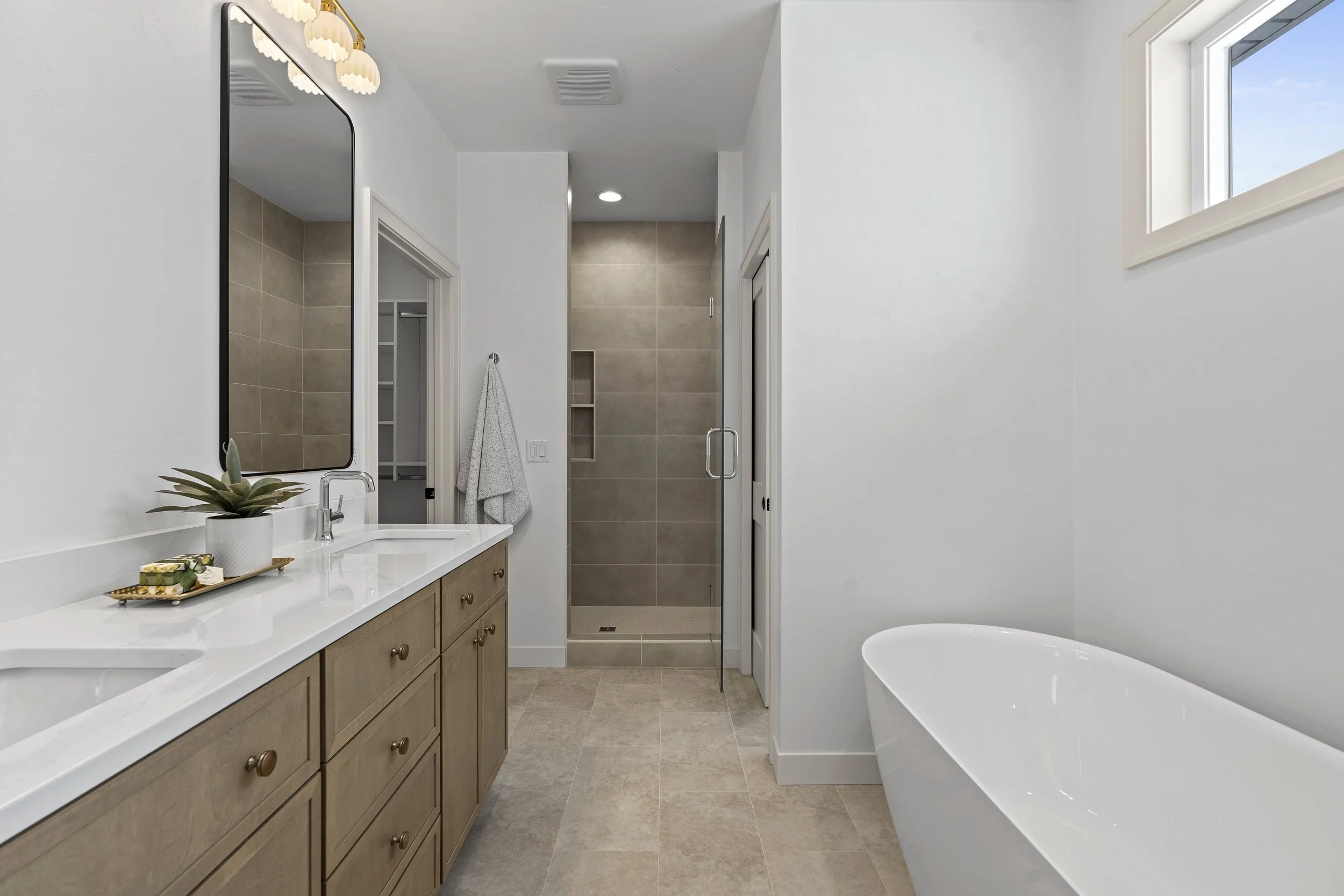 Private Primary Suite Wing – Spacious retreat with dual vanities, soaking tub, separate shower, and walk-in closet.